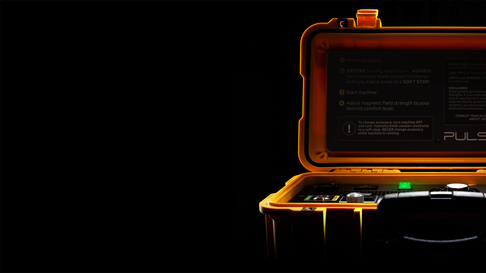 An image with white background of a Pulse PEMF EQ x1 machine with adjustable settings for personalized pulsed electromagnetic field therapy.